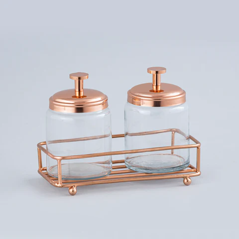 Set of Two Copper and Glass Canisters