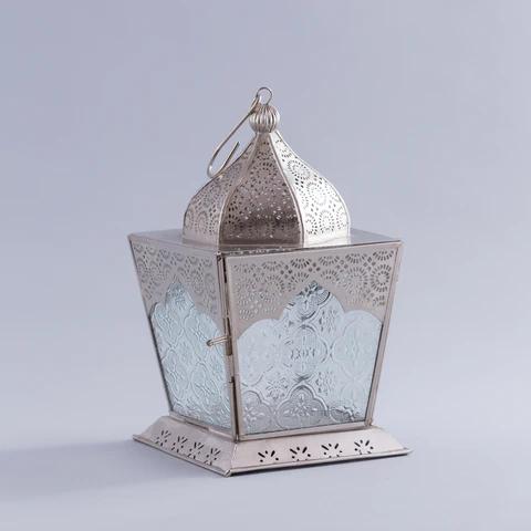 Silver Metal Moroccan Style Candle Holder